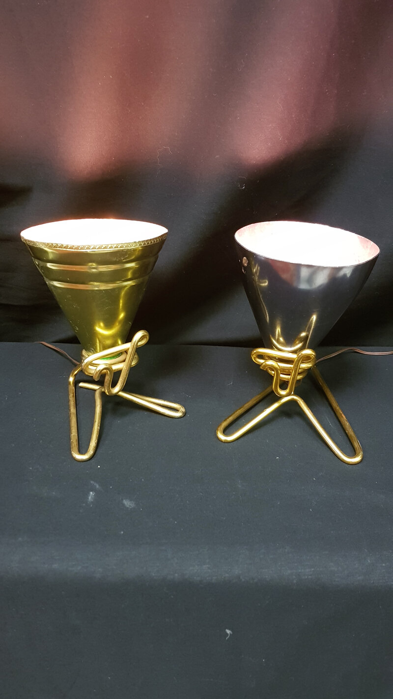 Coppia di lampade in alluminio anodizzato di Rinnovel, disegnate da Ettore Sottsass. Disponibile anche per il noleggio (studi televisivi, foto cataloghi, moda, sfilate, studi cinematografici) Si prega di inviare una mail o telefonare prima dell’acquisto, perché è in vendita anche su altri siti o potrebbe essere stata noleggiata.