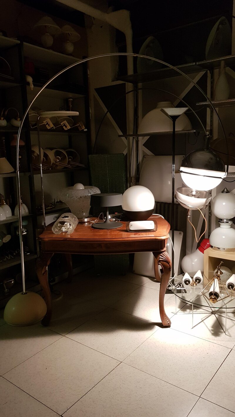 Guzzini – Fabio LenciLampada da terra modello Arco in cemento, acciaio cromato, metacrilato. Ogni descrizione di questo pezzo è superflua